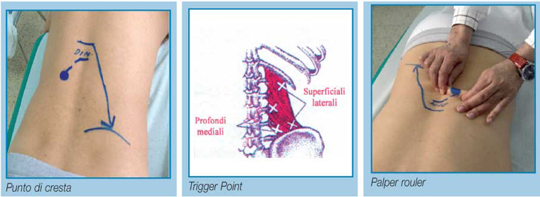 Il metodo che mette in evidenza la sofferenza del segmento mobile, con associata sindrome cellulotenomialgica, è la tecnica del Palper Rouler. Tale tecnica consiste nell’arrotoamento della cute con indice e pollice delle due mani; nella sede interessata dal disturbo si apprezza il sottocute edematoso, ispessito e dolente; tale reperto interessa anche il muscolo sottostante, nel contesto del quale sono riscontrabili dei punti di maggiore irritabilità, che, stimolati, evocano dolore in loco e, a volte, anche a distanza. Questi punti altro non sono che i Tigger Points, che definiscono la Sindrome Miofasciale come espressione clinica della Lombalgia da Overuse. Tra le indagini strumentali la Teletermografia è stata quella che più d’ogni altra ci ha permesso di evidenziare i TPs anche se silenti. La metodica nel tempo si è affinata, tant’è che attualmente disponiamo della teletermografia dinamica.